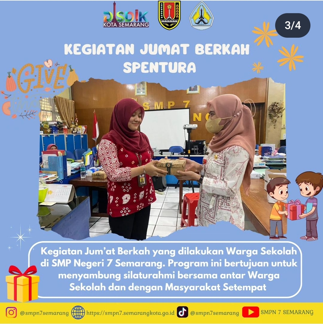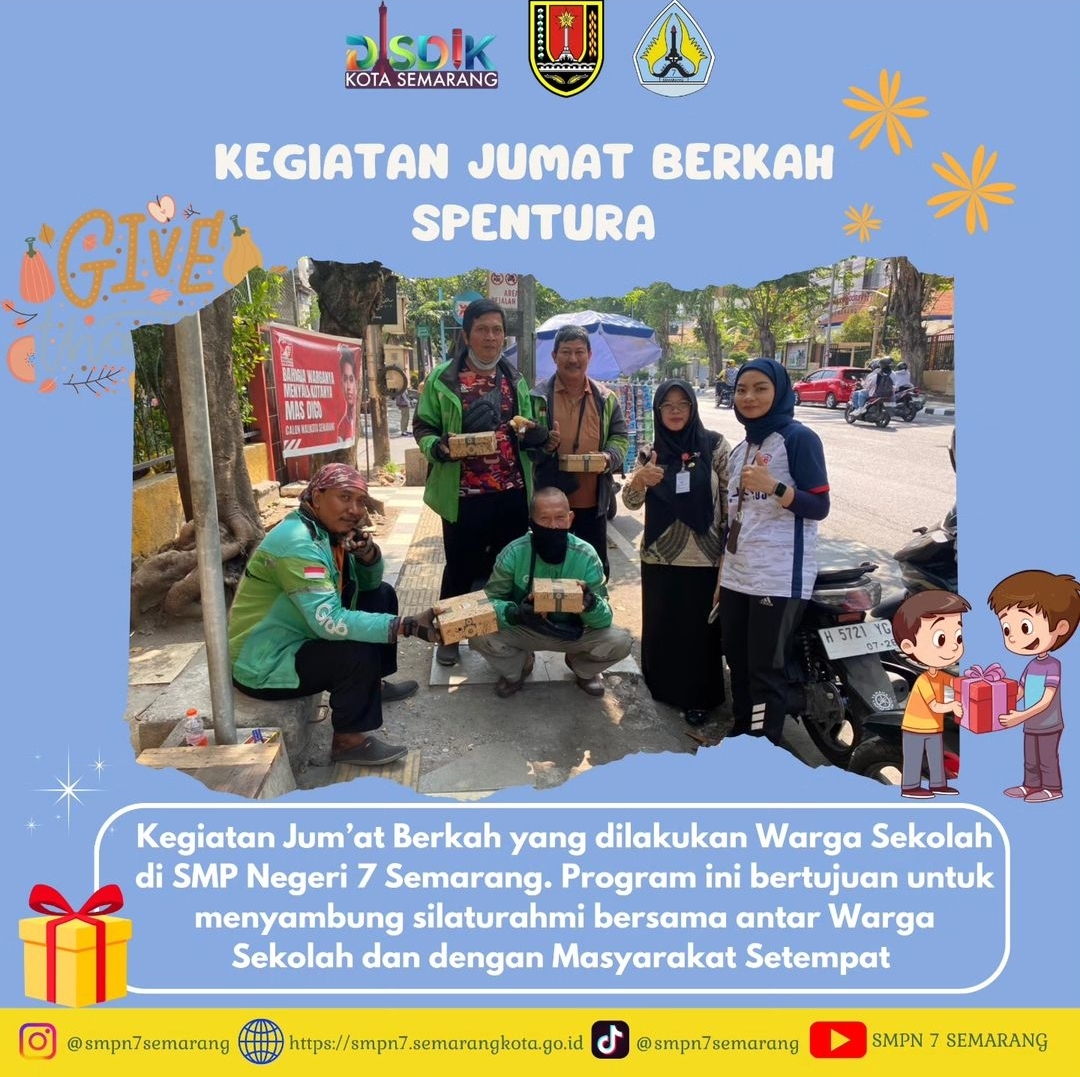 Hari Jumat ini, seluruh warga sekolah bersatu dalam semangat kebaikan melalui kegiatan Jumat Berkah. Semuanya berpartisipasi dengan antusias, berbagi kebahagiaan dan kepedulian kepada sesama. Kegiatan ini menjadi pengingat bagi kita semua bahwa kebaikan, sekecil apapun, memiliki dampak besar bagi orang lain. Dengan semangat kebersamaan, kami belajar untuk saling membantu dan memperkuat ikatan persaudaraan antar sesama. Terima kasih kepada semua yang telah ikut serta dan menjadikan hari ini penuh berkah dan inspirasi. Mari terus menyebarkan kebaikan di setiap langkah kita.