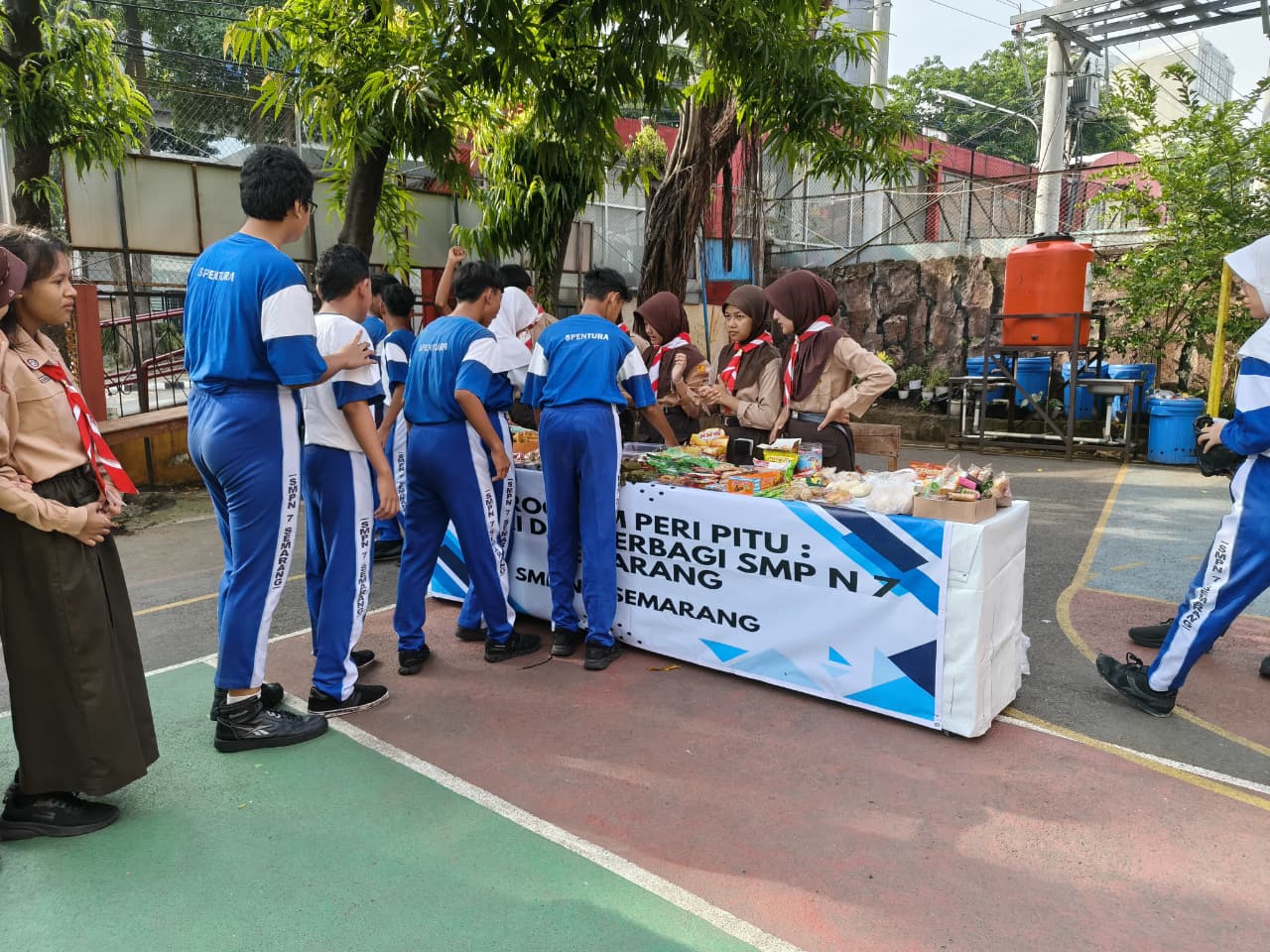 Kegiatan kokurikuler kelas 7 SMP Negeri 7 Semarang dengan tema “PERI PITU: Peduli dan Berbagi” telah berlangsung dengan lancar dan penuh makna pada hari Jumat, 3 Oktober 2025. Acara yang diselenggarakan di lapangan SMP Negeri 7 Semarang ini diikuti oleh seluruh siswa kelas 7 beserta para guru. Kegiatan ini bertujuan untuk menumbuhkan rasa peduli, semangat berbagi, serta mempererat kebersamaan di antara warga sekolah.